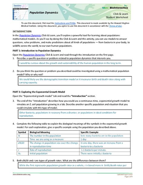 Download Population Dynamics Packet Answer Key PDF