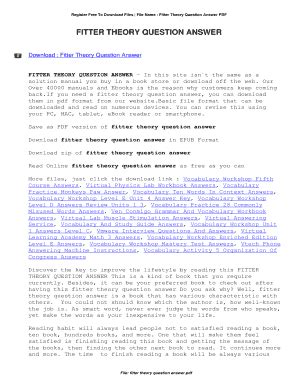 Download Fitter Theory Question Answer Epub online is a convenient and frugal way to read Fitter Theory Question Answer you love right from the comfort of your own home. Yes, there sites where you can get Epub "for free" but the ones listed below are clean from viruses and completely legal to use.