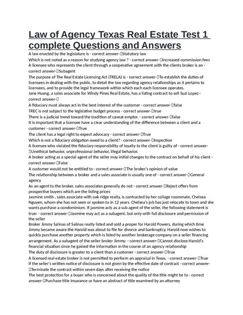 Read Texas Real Estate Agency Chapter Quiz Answers Reader